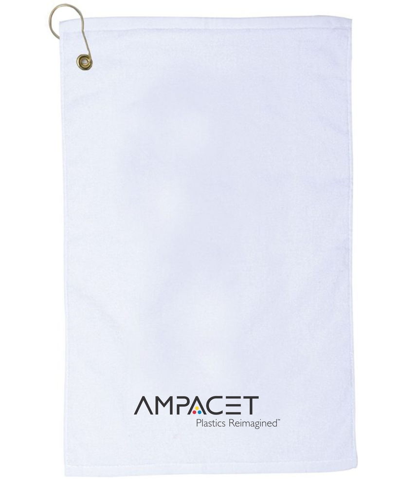 Bring quality and value together with this small and convenient, 100% cotton terry velour golf towel. Wipe down your golf gear with your brand. Easy to hang with the included corner grommet.